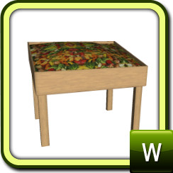 You can find this decoration in Misc. Decor for 75 Simoleons. One part recolorable, three variations of vegetables.