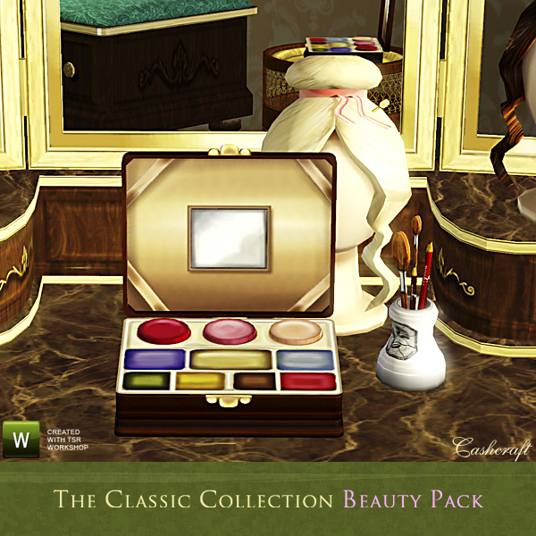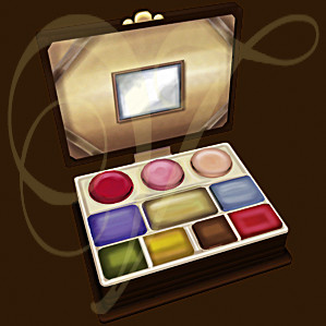 A fine selection of expensive cosmetics in a handcrafted case. Created by Cashcraft for TSR.