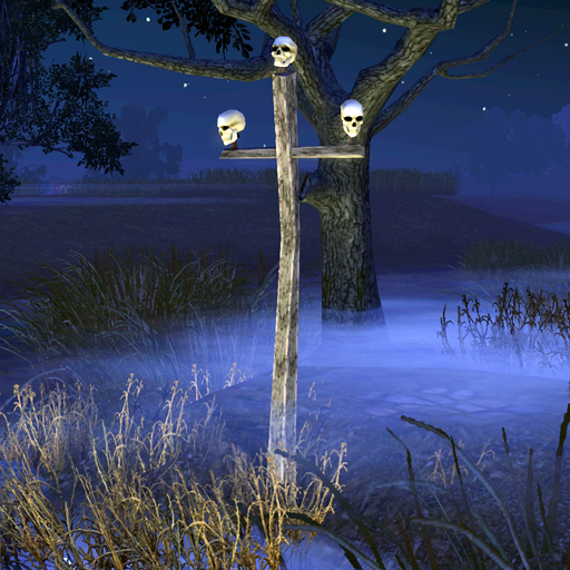 O, be you a fool and take not what is yours! Three skewered heads of thieves of old - a little warning to other would-be thieving peasants.