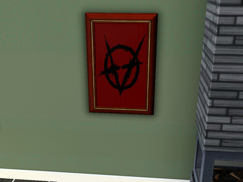 showing the Brujah clan crest Painting with a film noir frame around it.