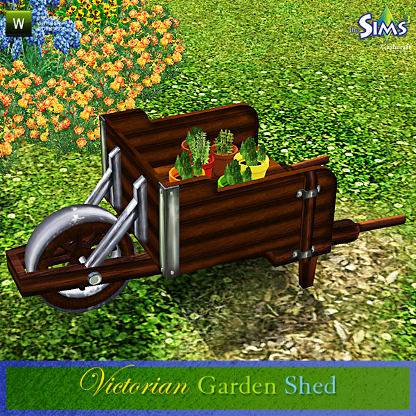 An old fashioned wheelbarrow (coffee table) to haul around pots, mulch, and other gardening essentials. Created by Cashcraft for TSR, www.thesimsresource.com/artists/cashcraft
