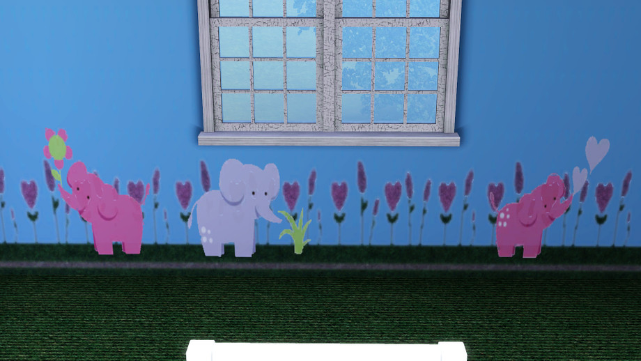 Adorable wallpaper with flowers bordering the bottom and sweet elephants.