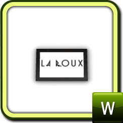 The British pop band La Roux's Logo/Sign. Comes in White background with black letters, OR black background with White letters. Frame is re-colour-able.