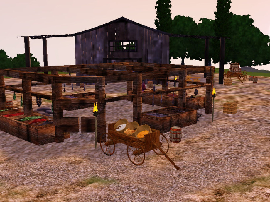 Every Village Needs a Market Place. this Old time Market Place is a Replacement for The Grocery Store in the game. This Building can be used exactly like the Sims building.
