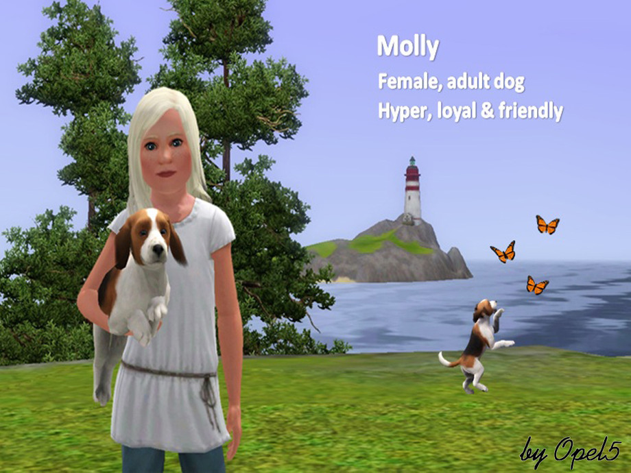 This little dog is called Molly. It is a cute female dog, that will be loved by all the Sims in town and especially by the owners. Because Molly is a bit hyper, but very friendly. Besides that Molly is very loyal, it will build faster relationships with family members. Take good care of Molly.