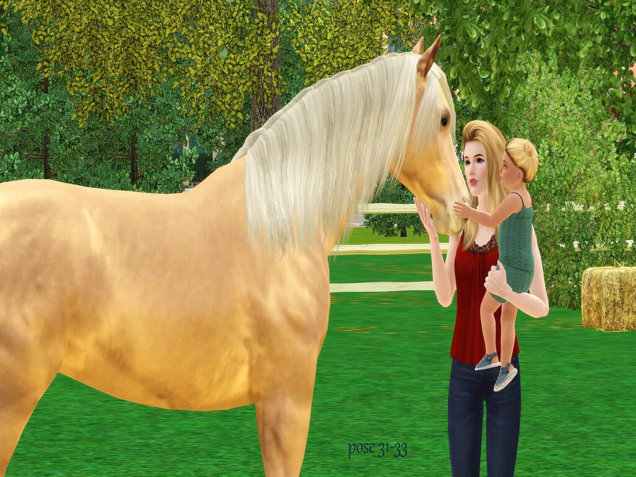 This set of farm poses focuses mainly on toddlers and children and displays fun and family. There are two horse poses and one cow in this set.