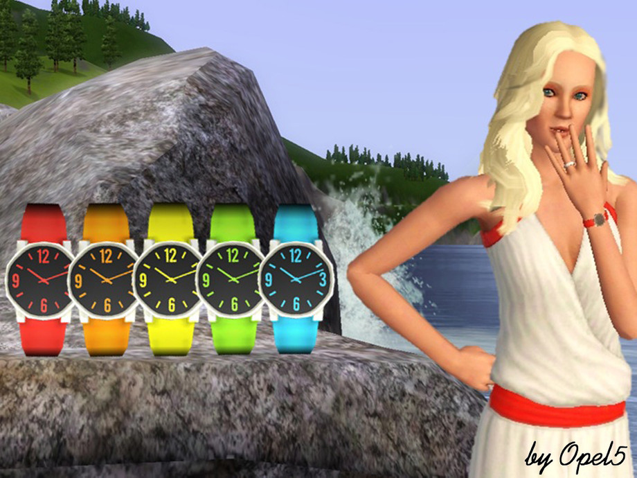 This is a great set for male and female Sims. The set contains Rainbow Watches for young adult and adult Sims. The Watches can be wear the whole day, because it is available in every clothing catagory. You get the Rainbow Watches in Rainbow colors, but the Watches are recolorable so you can change these colors in the way you like it.