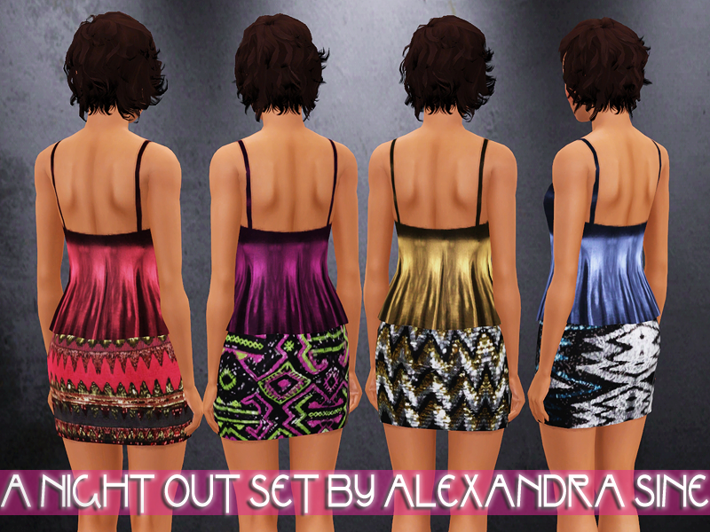 This set consists of 1 wet look top and 1 Sequinned Skirt, great for any party occasion. Made for your young-adult and adult female sims.