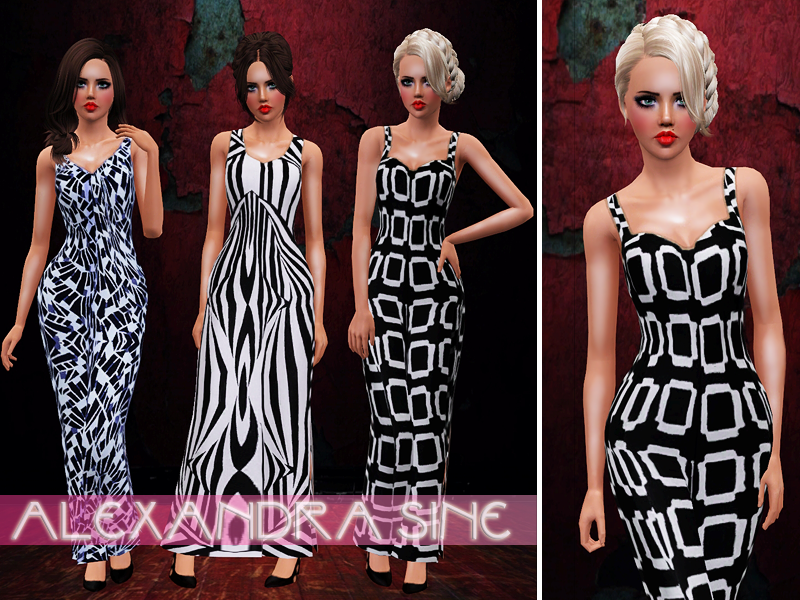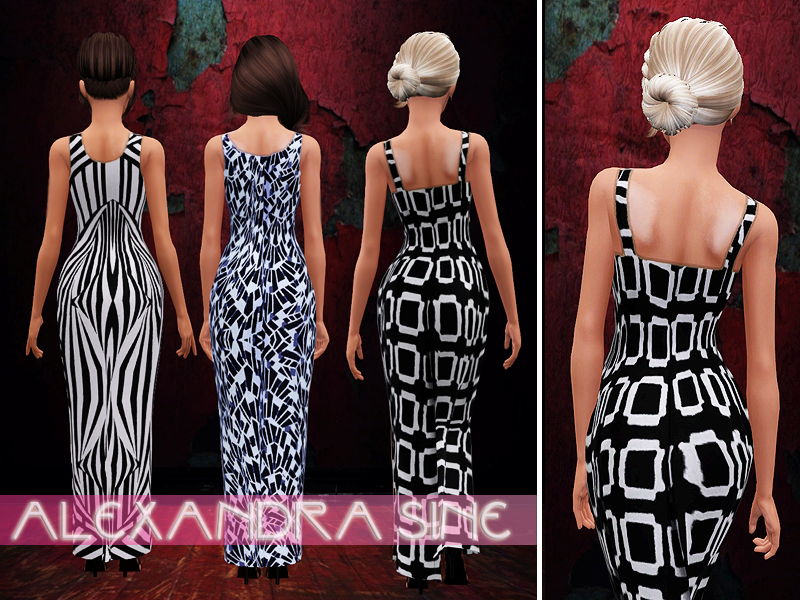 3 unique and arty maxi dresses for your young-adult and adult female sims. Hope you like it :)