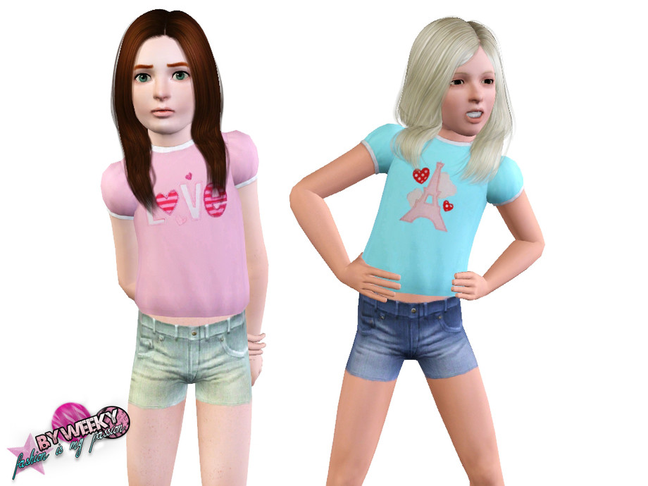 Sims 3 — Maria SET by Weeky — Maria SET - top and shorts for girls. Denim shorts and top with graphics.