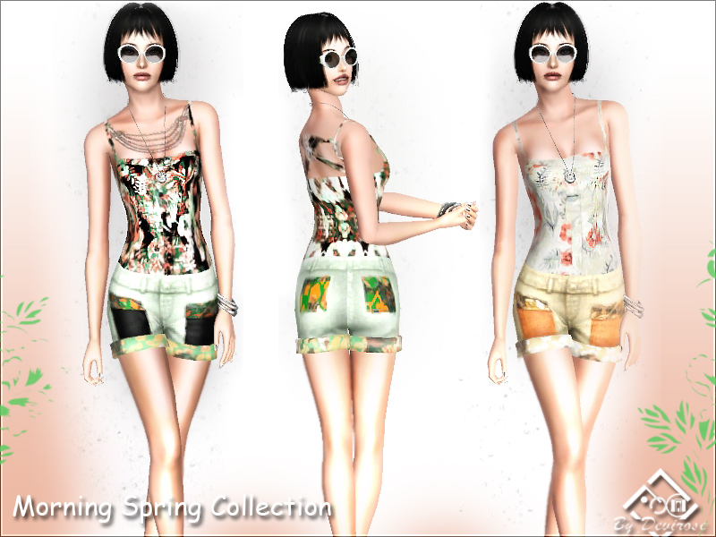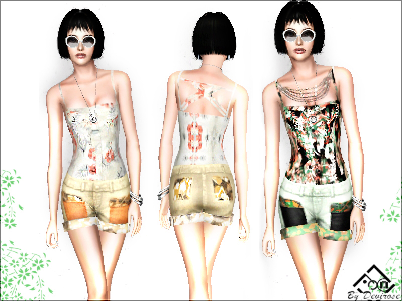 and a pair of shorts with matching colors.Corset in white is not recolorable, corset green yes and have a pearl necklace for decoration, shorts are recolorable.