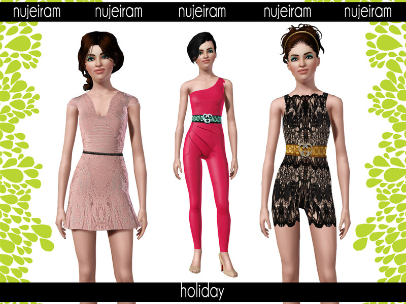 This set is composed of designer jumpsuits and cocktail embroidered dress. Each item is colorable except for the belt.
