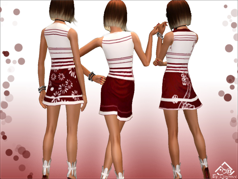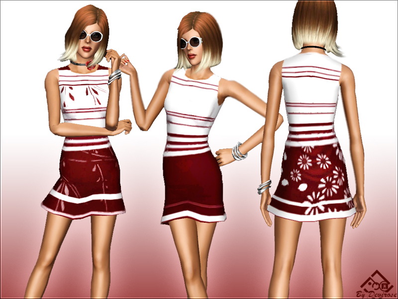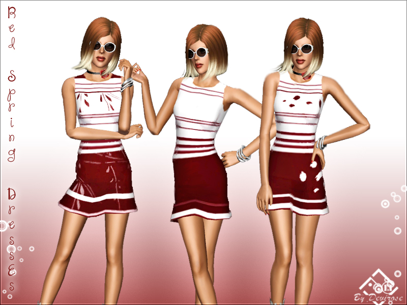 The set includes three mini dresses in red and white tones,with lines and patterns of plants and flowers,in honor of spring.All recolorable, no need EP,base game. Enjoy^^