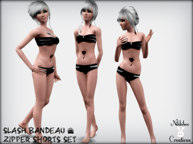 A slash bandeau top and zipper shorts for your young adult sim's swim and sleepwear. Recolorable top and bottom, hope you enjoy!