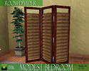 8 meshes in this new bedroom, following the Modest series. Doublebed, endtable, orchidplant, dresser, mirror, tablelamp, room divider and a painting. All have 3 variations several recolorable parts.