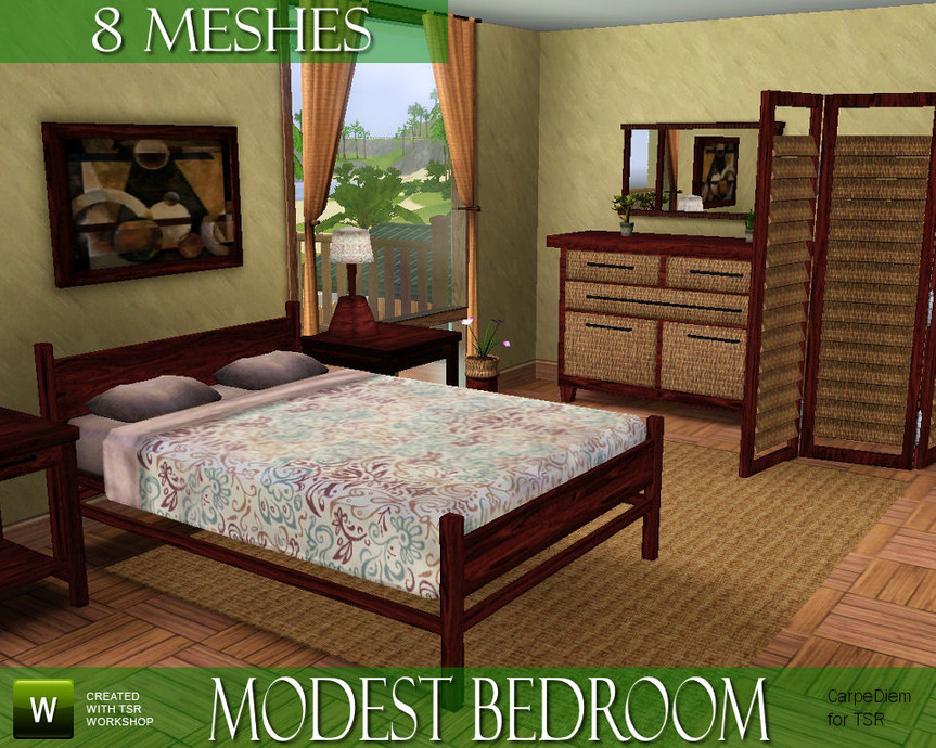Sims 3 — CD_Modest Bedroom by TSR Archive — 8 meshes in this new bedroom, following the Modest series. Doublebed,