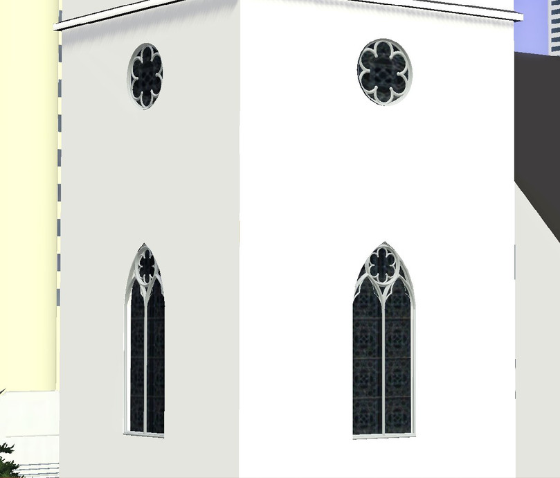 The cheat "moveobjects on" is needed to be able to place the windows onto the church.