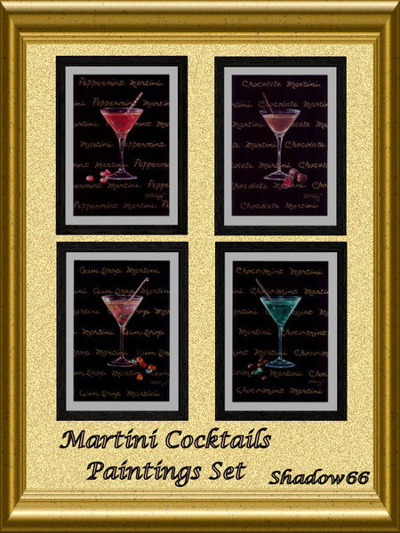 A collection of four martini cocktail paintings (shaken, not stirred of course!!) by the artist Janet Kruskamp. Look great behind the bar, in a diner, or even a den.