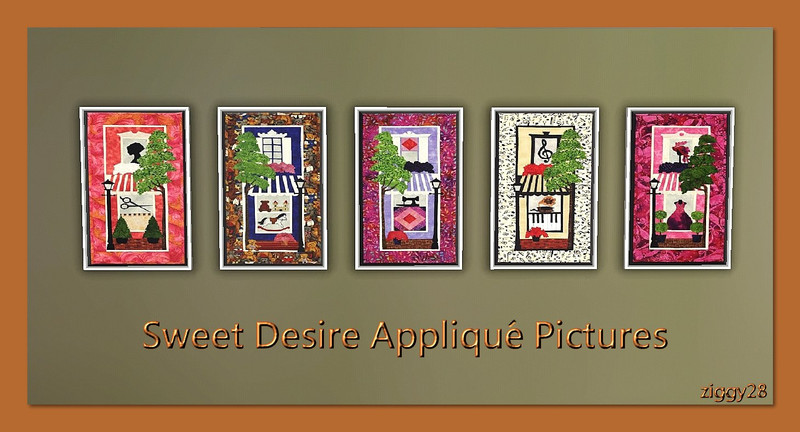 A beautifull set of five applique pictures of different shops. These pictures are cloned from the Maxis Teenposter Picture