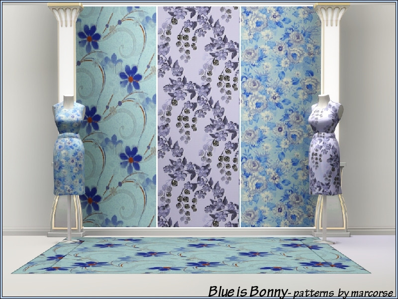 Blue is certainly bonny, as this set of three, floral Fabric patterns will show