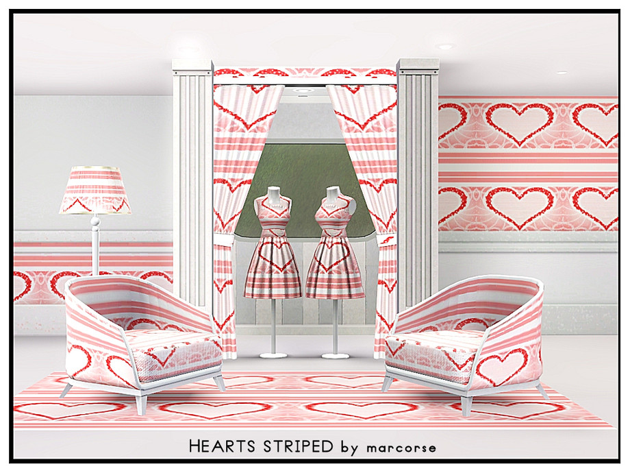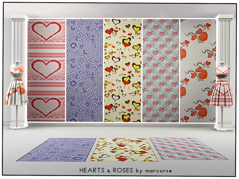 Five collected patterns featuring hearts and/or roses. They are located under: Abstract: Heart Balloons/Love Graffiti. Fabric: Trellised Rose/Unchain My Heart. Themed: Hearts Striped.