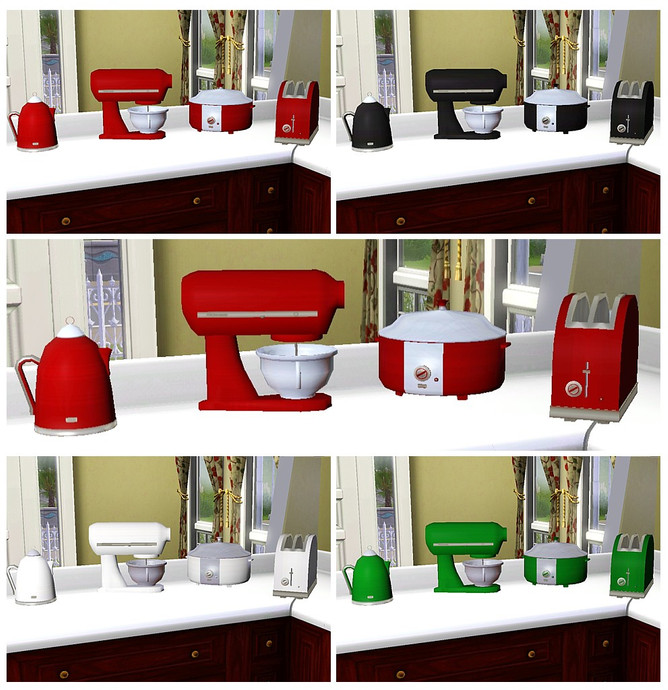 Sims 3 — Decorative Appliances by Dgandy — A Stand Mixer, Toaster, Crock Pot and Teapot all color coordinated. These are