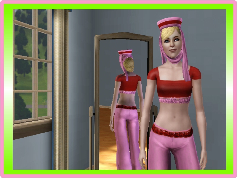 Jeannie is a character from the American tv sitcom I Dream of Jeannie. She was portrayed by Barbara Eden. She is made for a request here at TSR. Jeannie is a magic genie and is found by Major Anthony Nelson while he is on a space mission for NASA. He finds her on a desert island and frees her from her bottle!! She falls for him and the rest is silly fun!!