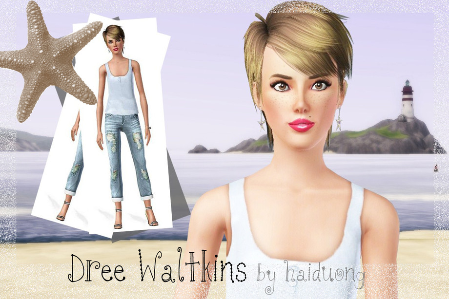 This is my newest sim. Her name is Dree Waltkins, she loves nature, fashion and aspire to be a the leader of the town. I hope you'll like her. Feedback is appreciated :D