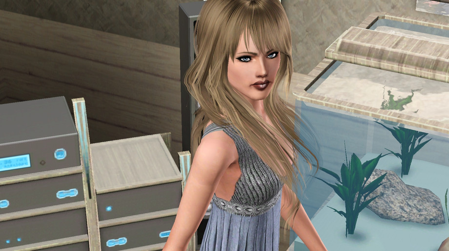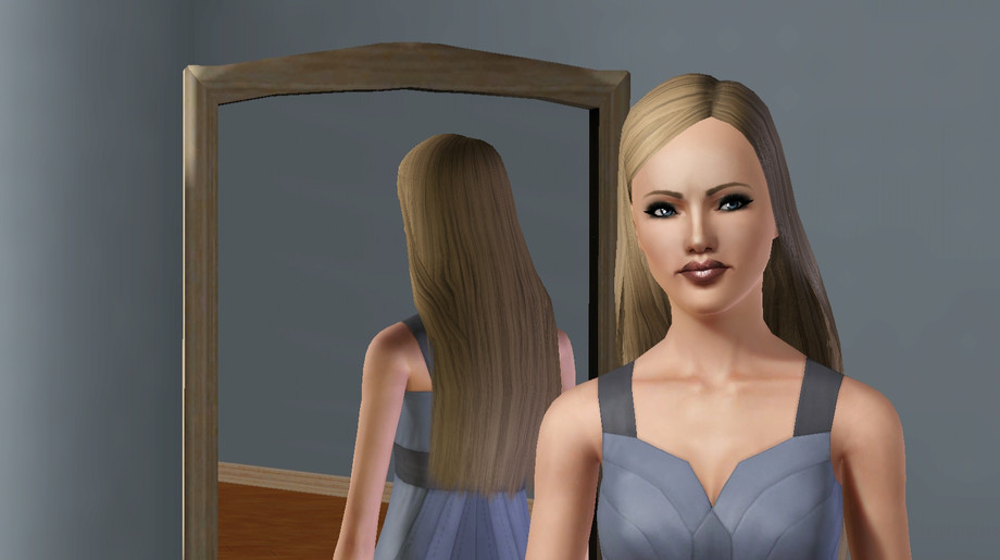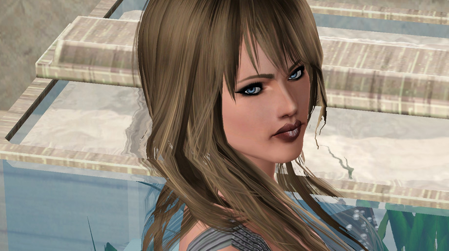 This sim reminds me of someone you would see in a final fantasy game. but the actual sim has no cc but the eyes and make up and finally skin. i am now trying to limit the cc in a download so i can actually put my sims online but the pics she her with peggy hair peggy skin dress found on tsr