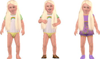 A little toddler full of energy and laughter she loves to watch Tv and play with her toys. Dont forget mesh or hair will not appear in game