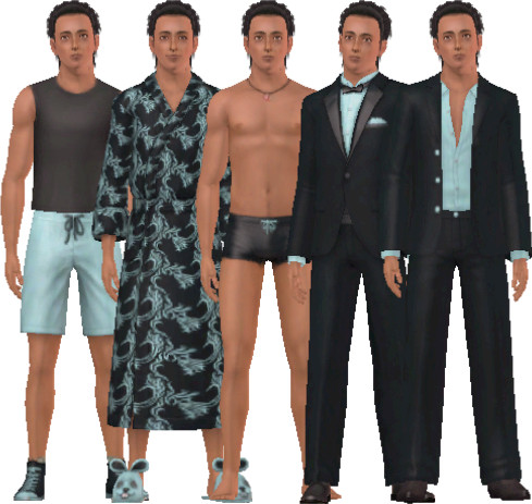 His hair is from Sims Artist Union (SAU) the rest is Maxis