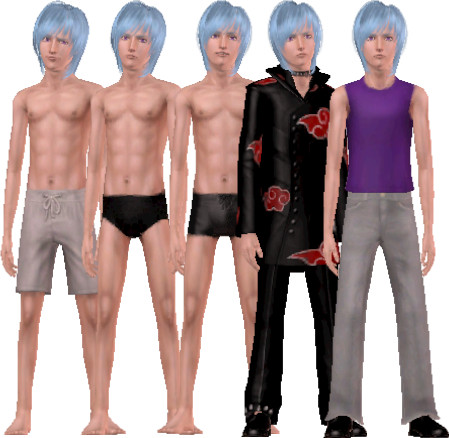 I got the Akatsuki-pattern from amy-hotchic.jimdo.com/sims-3 and the hair is from peggysims.com.
