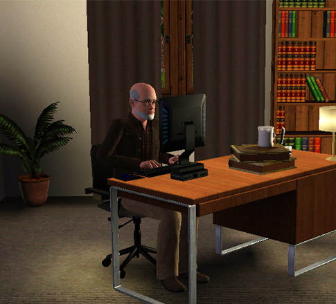 Thomas likes nothing better than to read a good novel or to take a nice long walk through the forest. He has a great sense of humor and now that he has retired, he intends to write humorous stories for children and adults. (Elder male. Traits: Bookworm, Good sense of humor, Handy, Loves the outdoors, Neat. No CC used. Loosely based on Terry Pratchett.)
