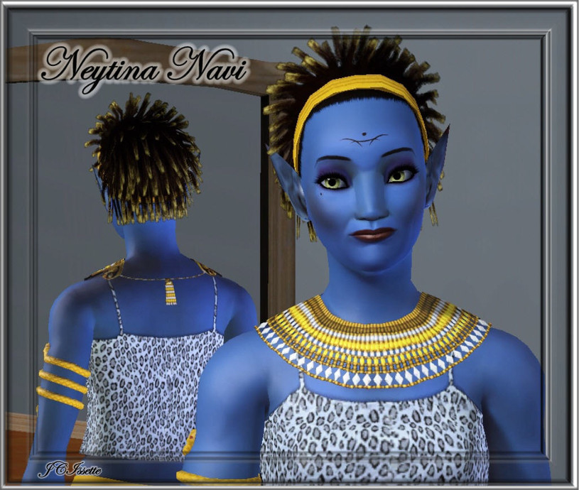 Neytina Navi, the last of four Navi Sims, was created for my new world, Pandora. These Sims are loosley based on the Navi from the movie, Avatar. They live on a small tropical island, Pandora, where they survive by being fishermen, artists and gardeners. There are two males and two females to begin your Navi race on Pandora. Pandora lots are being released today, also. Please see my blog for all the details and links for Pandora. I hope you will have an interest in this amazing world.