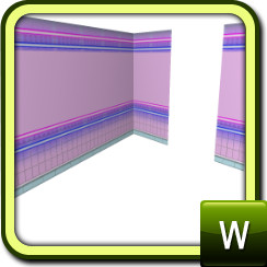 pink tile panel with upper and lower pink and blue neon stripes