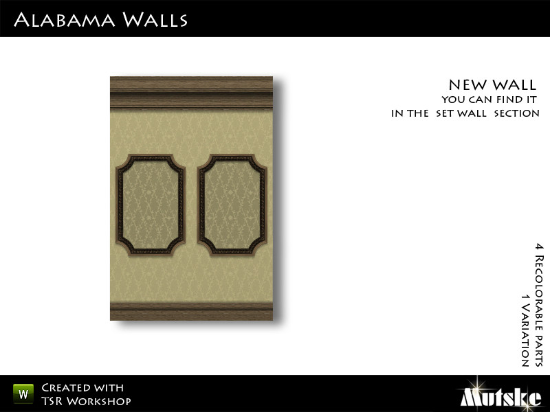 Sims 3 — Wall Alabama  by Mutske — 4 Recolorable parts. Made by Mutske@TSR. TSRAA.