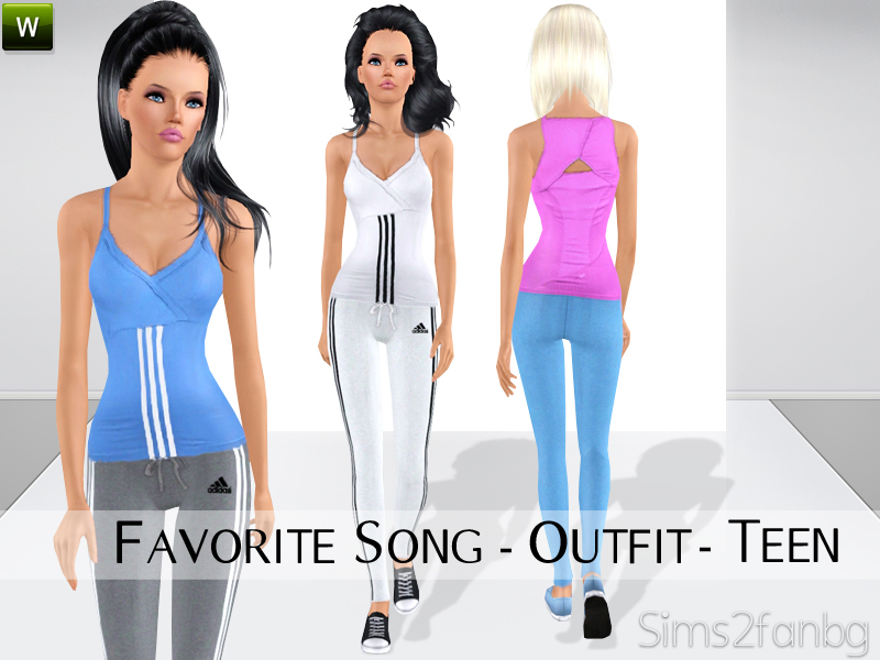 Outfit with bottom and top in 3 recolors,Recolorable,Launcher Thumbnail.