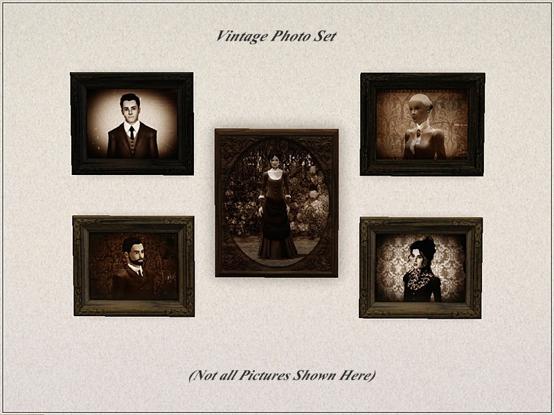 The pictures are in game shots played with in a photo editor to give them that antique look. All of these are clones of various EA wall hangings and should not replace anything in your game.