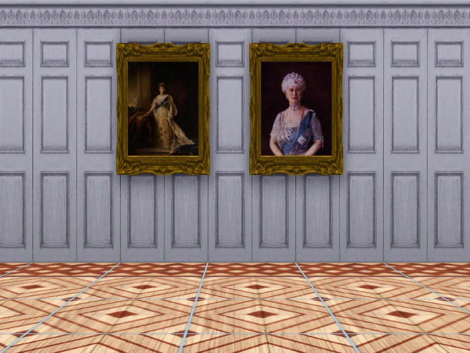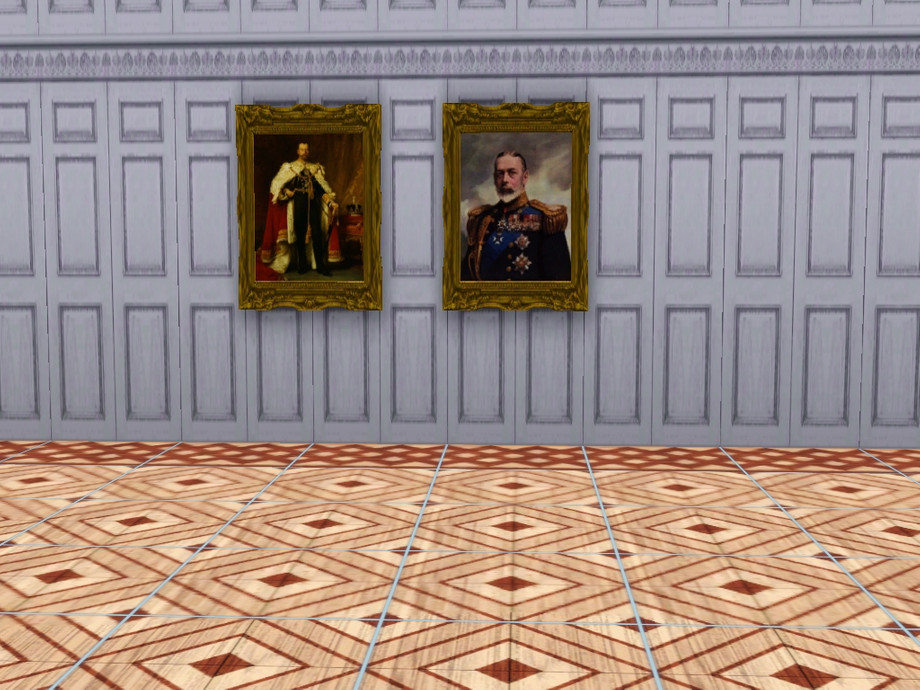 4 paintings, two of HRH King George V and two of his wife HRH Queen Mary of Teck. These are part of a much bigger set I'm working on, and although inspiration for the Tudor and Stuart paintings (to come) came from Simbridge Hall the overall collection is inspired by MrNSheikh's Buckingham Palace. Once the whole set is comleted they will hang in their pairs in a specially built gallery.