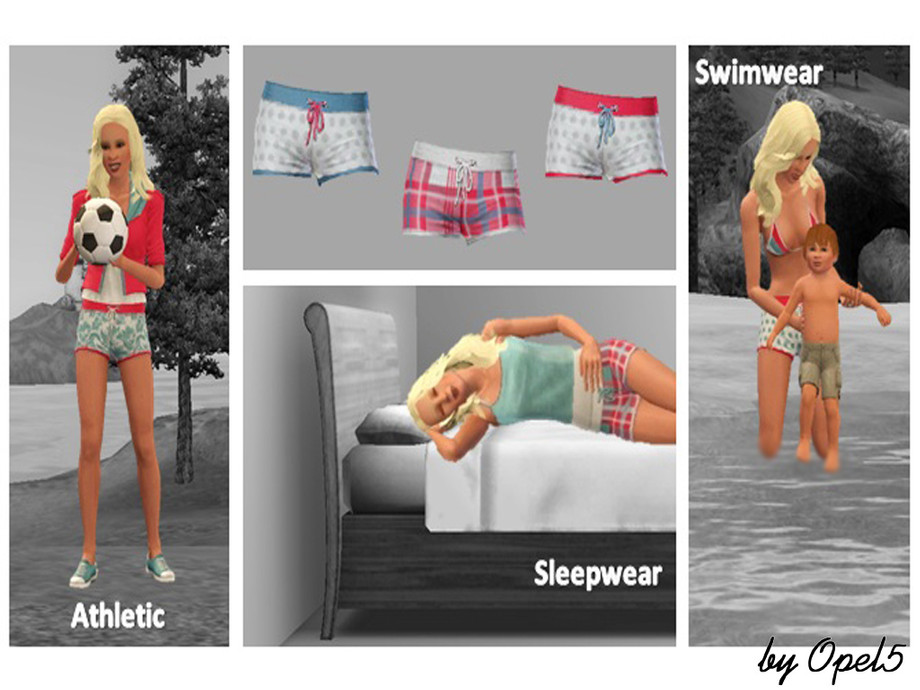 It is summer, so your female adult and young adult Sims need this Summertime set. This set contains 3 different bikini tops and a great short that you can match with the bikini top but also mix with other clothing. The two creations are recolorable, which makes mixing and matching a lot easier. Have a great Summer.