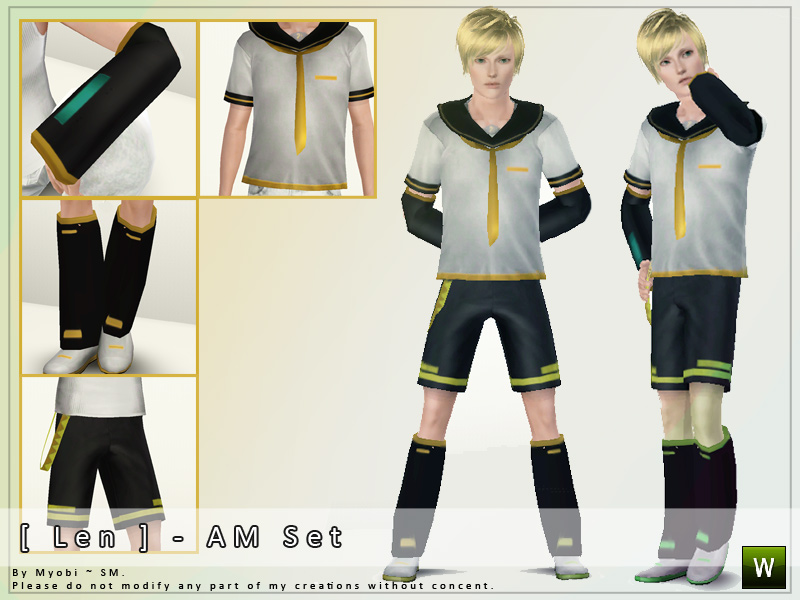 As per popular request, this is the Len Kagamine set to go with my previous Rin set. This set includes a top, shorts, shoes and arm warmers.