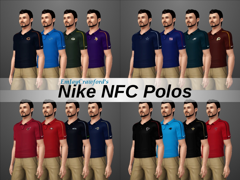 At long last, the NFC portion of my NFL polos project! As always, this set includes all sixteen NFC teams, and features recolorable stripes and Nike logo.