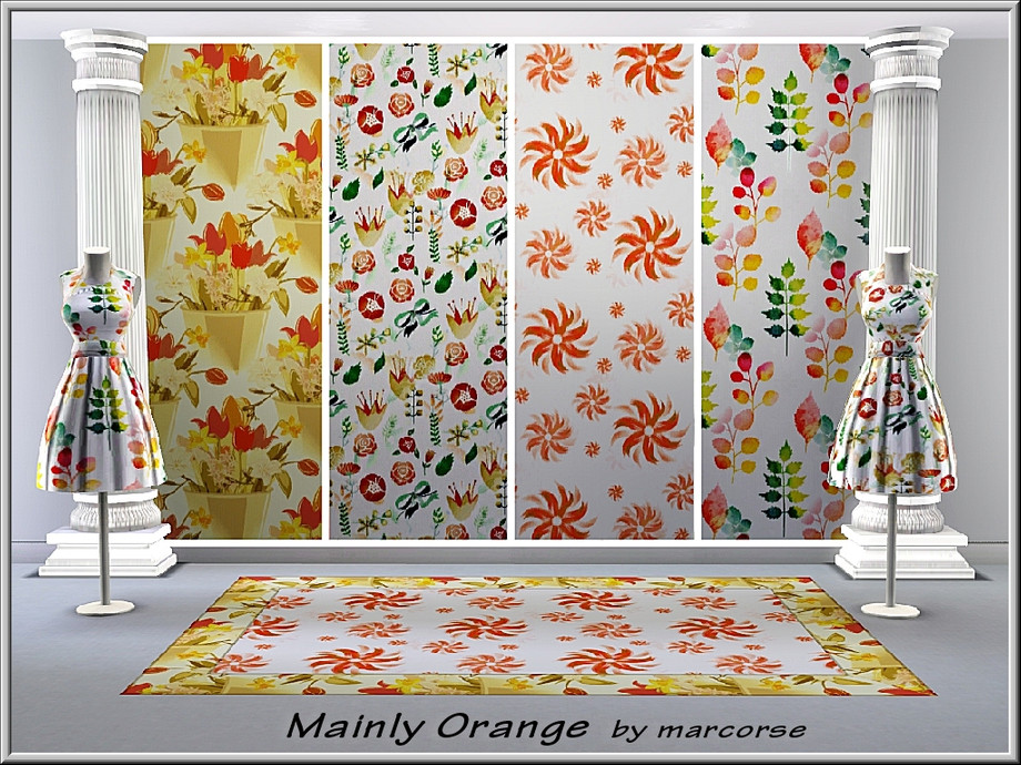Four patterns in tones of orange. are Fabrics - Spring Flowers 2/Turning are found in Themed.