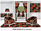 A selection of bold floral Fabric designs, including two Victorian wallpapers.