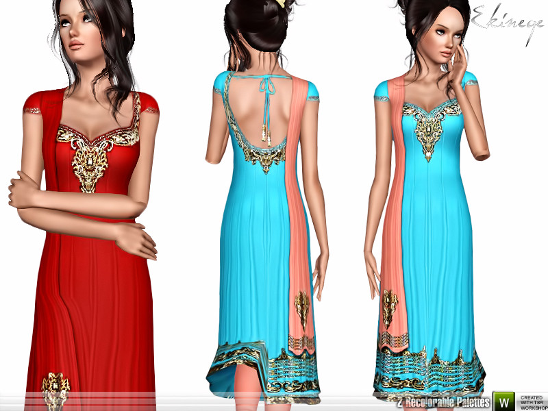 Anarkali dress with dupatta. Embroidery and shimmer borders. 2 recolorable parts. Custom mesh by me.