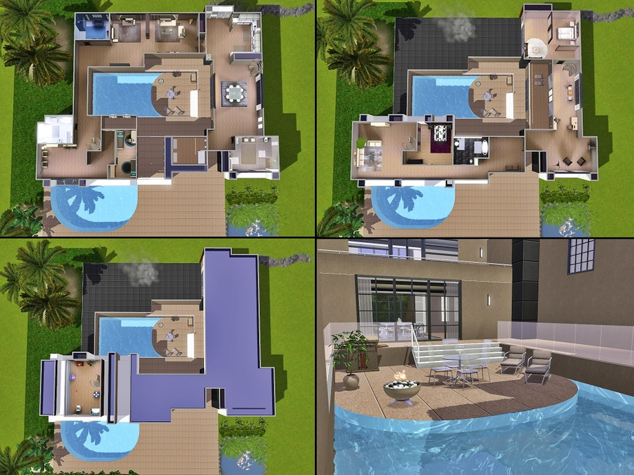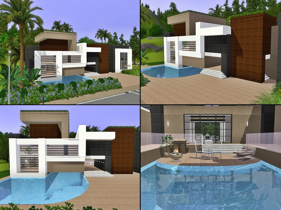 Up to 6 sims and a baby can live in this house, which has a large pool and a cozy courtyard.