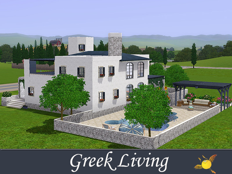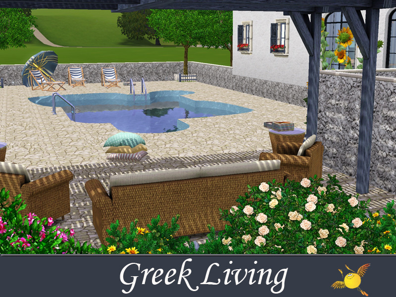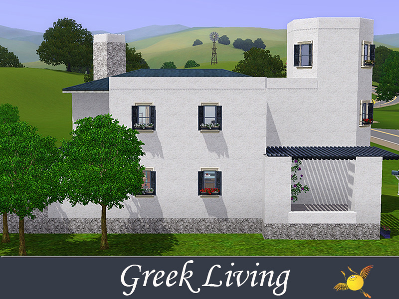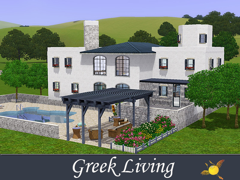 Stone, wood, flowers, white and blue are the ingredients for the perfect Greek house. This one has 4 bedrooms for a big family. A big pool area/yard is what your sims need for the hot summer days.