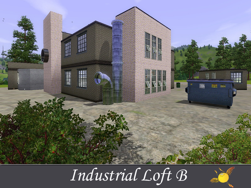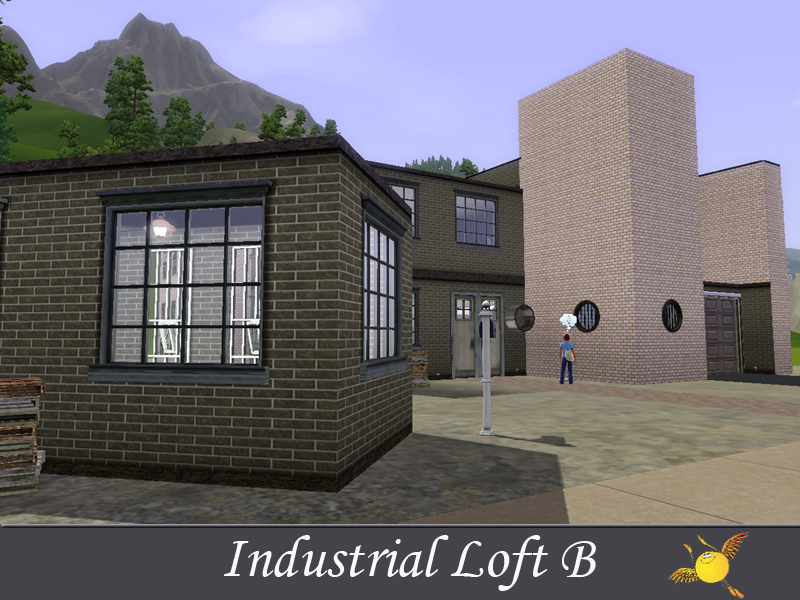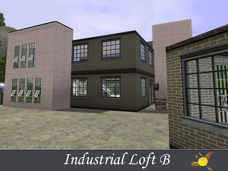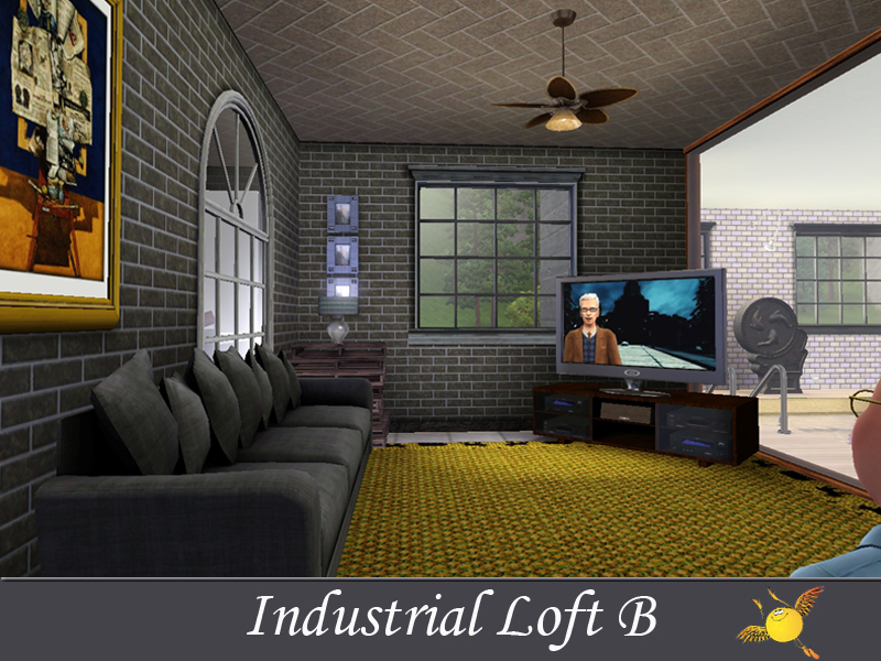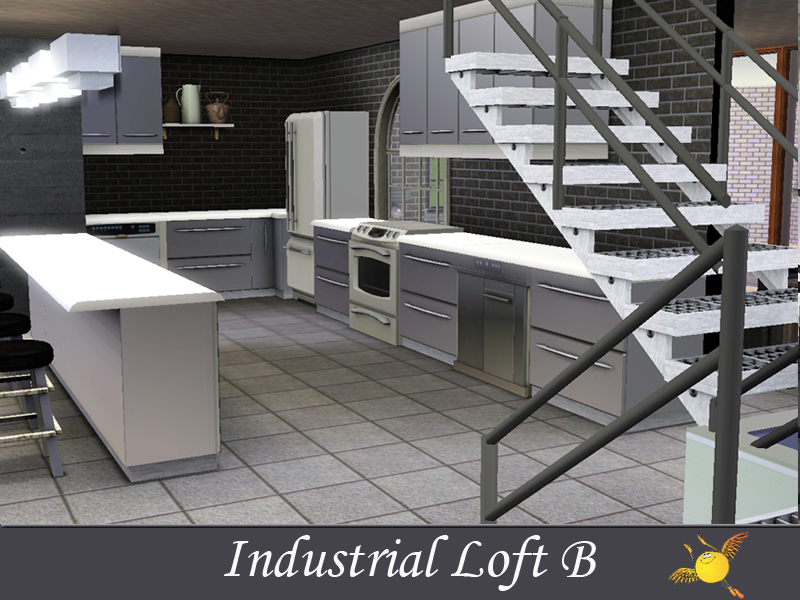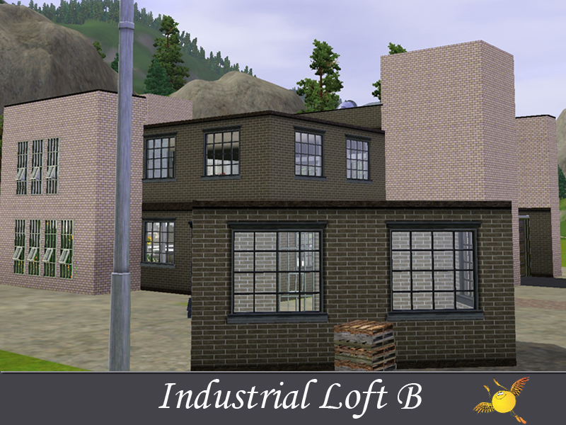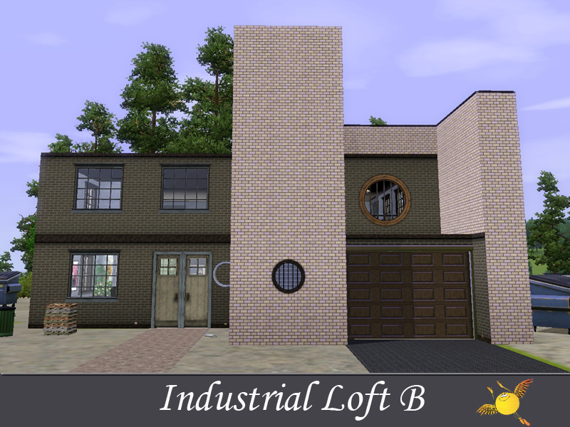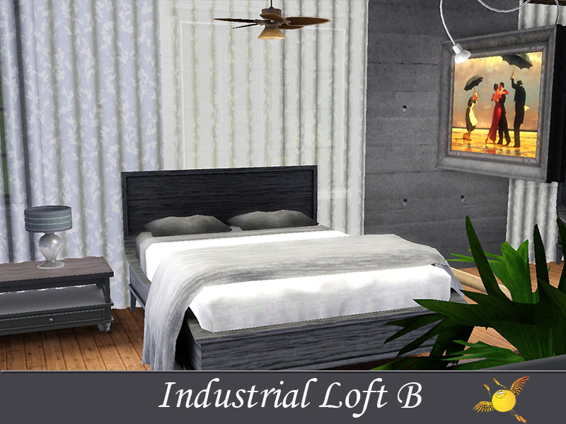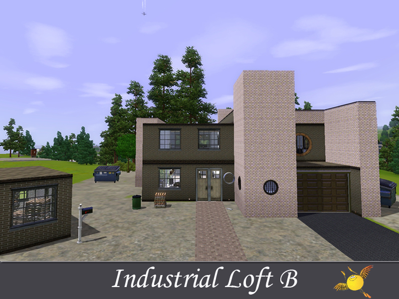 A two bedroom and two storey industrial loft which has all the comforts one needs to live in style. Base area: kitchen, dinning/sitting space, tv/reading space, a tiny indoor garden and a pool. The two bedrooms on the second floor are designed to keep the privacy that your sims need to get some rest