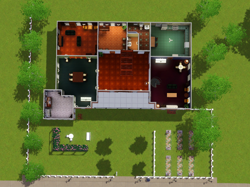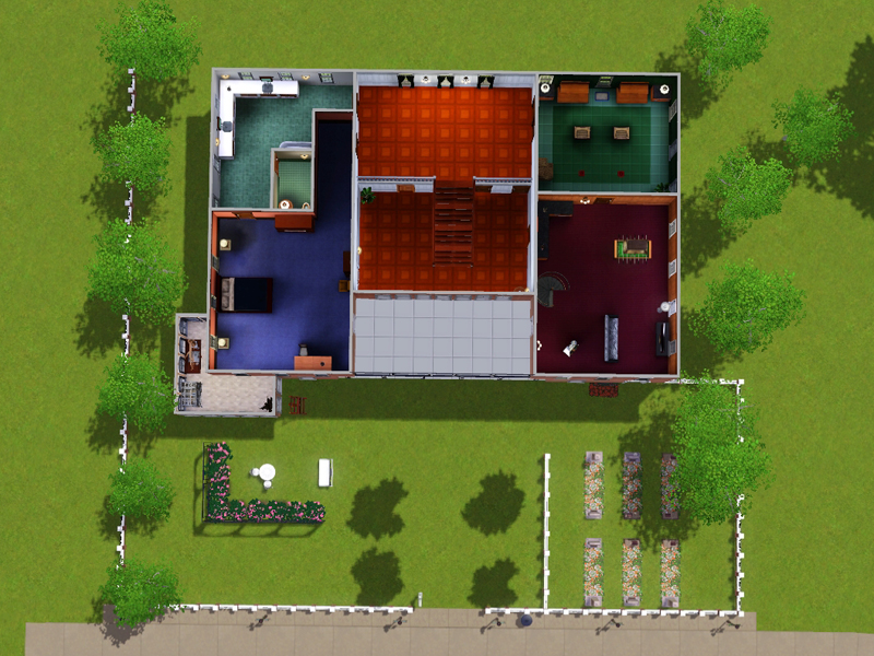 Note from Sam -- I had built this lot just before the dreaded Pets patch. Then the patch happened and the problems ensued. I have altered the lot so it is now compatible with Pets or the 1.26 patch. I originally did have the Modern Mission Double Bed by Gosik here at TSR in the house. But since the patch broke custom beds, I did take that out and replace it with a base game bed instead. If Gosik can get that bed fixed, I highly recommended downloading that for Gunther and Cornelia's bedroom. Any other custom content used in this lot has been fixed with the TSR RigFix tool.