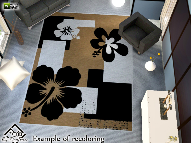 Forms of cheerful tropical flowers, for these rugs beautiful and modern.Images elaborations by Devirose-4 rugs in 1 file-Base Game Compatible,no need EP-All recolorable-Enjoy^^